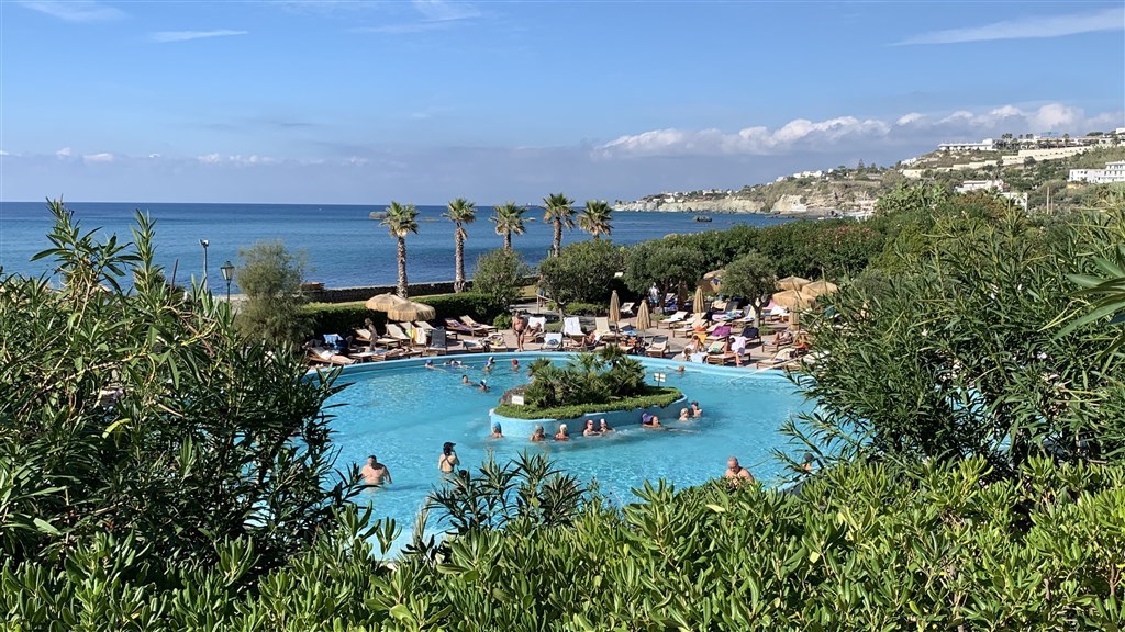 Volný den, možnost celodenní návštěvy termálního parku Poseidonovy zahrady, který patří k těm nejkrásnějším na ostrově. Komplex je malebně rozprostřený v zátoce jižně od Foria a je tvořen 22 bazény s termální vodou různé teploty, plaveckým bazénem, masážními vodními křesly, slunečními terasami a několika restauracemi a bary.