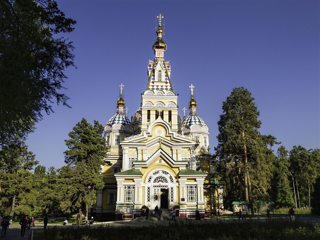Přílet do Almaty ve 03:30. Setkání s průvodcem na letišti a transfer do hotelu. Hned se ubytujeme a budeme odpočívat až do pozdní snídaně. Po snídani se vydáme na prohlídku největšího města Kazachstánu s panenským okolím i historickými památkami. Navštívíme krásný Panfilov park pojmenovaný podle 28 panfilovských gardistů, katedrálu Nanebevstoupení Páně – nejvyšší dřevěný pravoslavný kostel a jedna z nejvyšších dřevěných budov na světě, která pojme až 1800 lidí. Dále navštívíme muzeum lidových hudebních nástrojů a hlavně slavný Green bazar – jeden z nejstarších trhů v Kazachstánu. Na závěr vyjedeme lanovkou na vrchol Kok-Tobe ve výšce 1.130 mnm, který se nachází na jihovýchodním okraji Almaty asi 200m nad městem. Odsud se nám otevřou nejkrásnější výhledy na město. V areálu se nachází park, památky, vyhlídkové plošiny a televizní věž. Večer bude večeře na uvítanou v místní restauraci a poté návrat do hotelu.