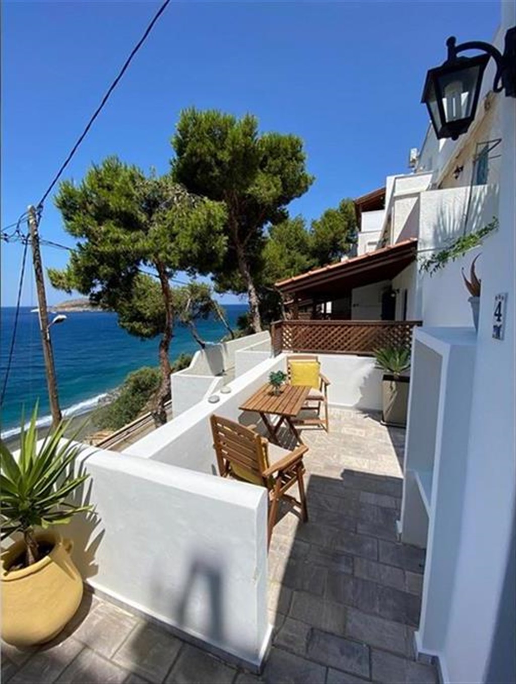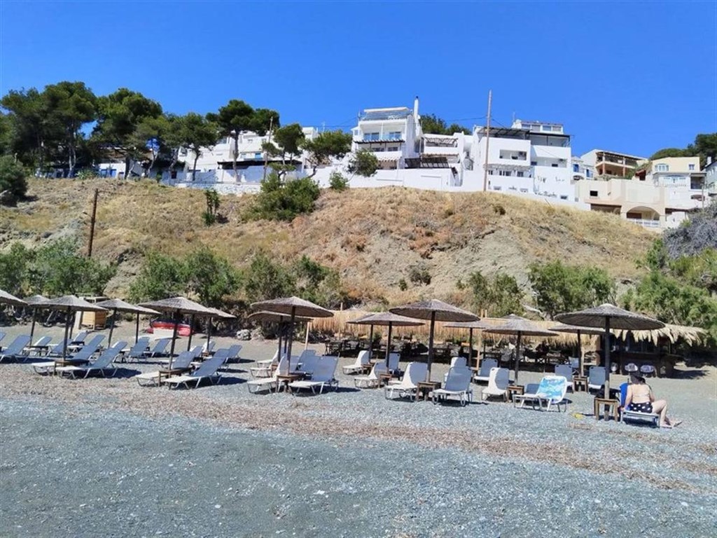 Moderně zařízená řecká studia a apartmány se nacházejí v malebném zálivu, který je lemován skalnatými výběžky s malými romantickými plážičkami pro klidný odpočinek. Ubytování leží přímo nad pláží Platy Gialos s tmavým pískem, vstup do moře je písečně oblázkový. Lehátka a slunečníky jsou zde za poplatek a osvěžit se můžete v plážové taverně. V blízkosti ubytování se nacházejí dvě restaurace, ve kterých si můžete vychutnat zdejší speciality a minimarket. Další možnosti nákupů a stravování nabízí blízké oblíbené letovisko Kantouni, které je vzdálené jen několik minut chůze. Největšími přednostmi tohoto ubytování jsou jeho klidná poloha s kouzelným výhledem na moře a nedaleký ostrůvek Ag. Kyriaki.