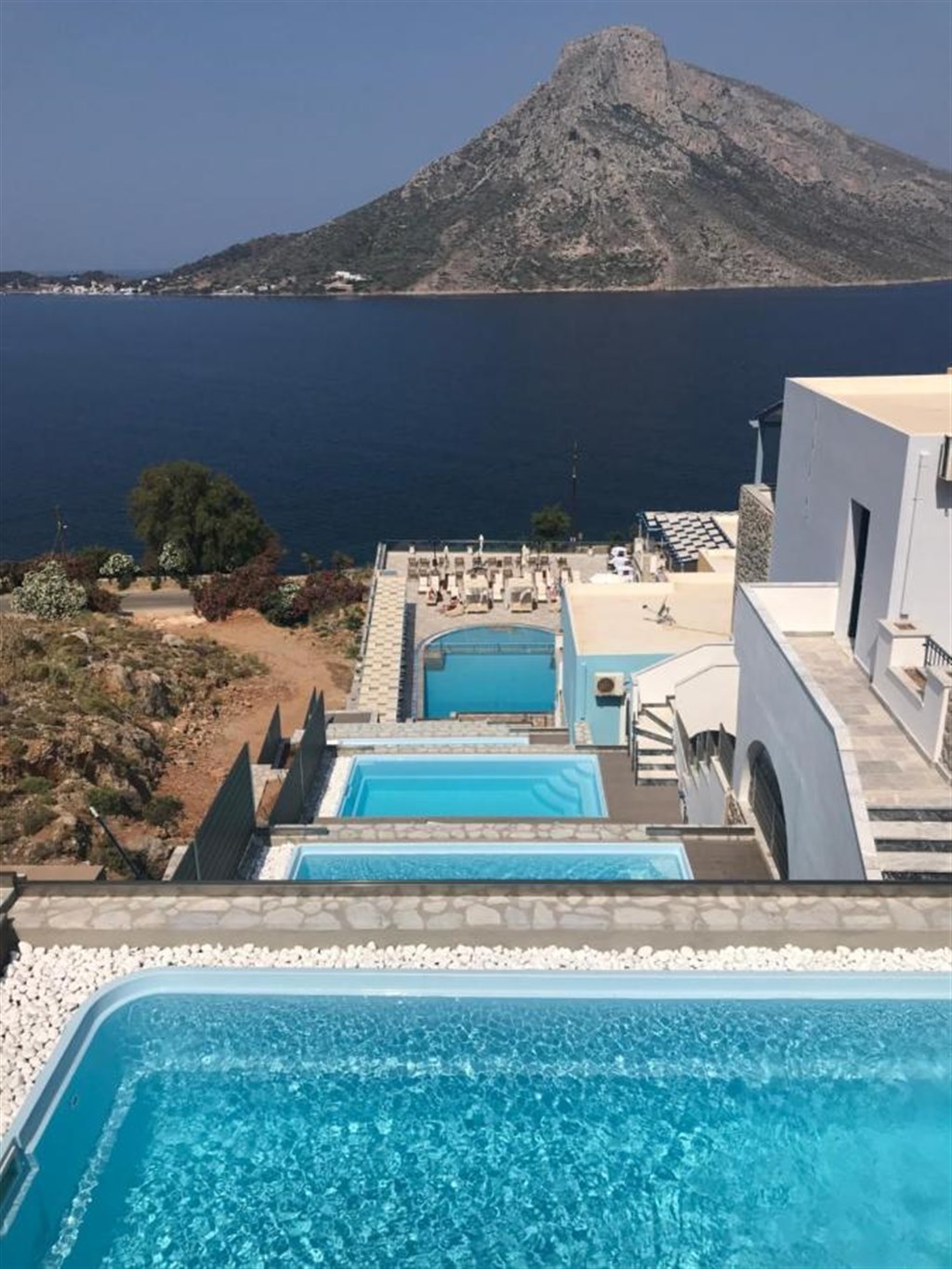 Tento 4* hotel navazuje na populární letovisko Massouri, s jeho vyhlášenou pláží, která je vzdálená stejně jako živější centrum Massouri necelý jeden kilometr. Přímo pod hotelem leží přírodní pláž Kastelli Beach, v menším zálivu obklopeném dramatickými skalami, mezi kterými se na pobřeží nachází mnoho dalších malých pláží. Ovšem stejně jako jinde na ostrově se k nim musí sestoupit, takže i na Kastelli Beach se dostanete až po cca 170 metrech z prudšího kopce, má oblázko kamenitý vstup do křišťálově čisté vody. Součástí vkusně zbudovaného areálu hotelu je bazén s dětským brouzdalištěm s lehátky a slunečníky včetně ručníků, kvalitně vybavené fitness centrum a hotelový minimarket. Samozřejmostí je snack bar a kavárna.